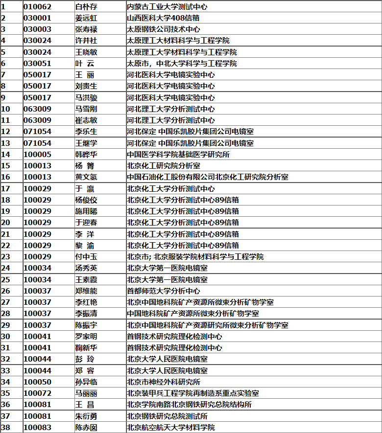 銀川市2008年中國(guó)電子顯微鏡學(xué)會(huì)會(huì)議名單