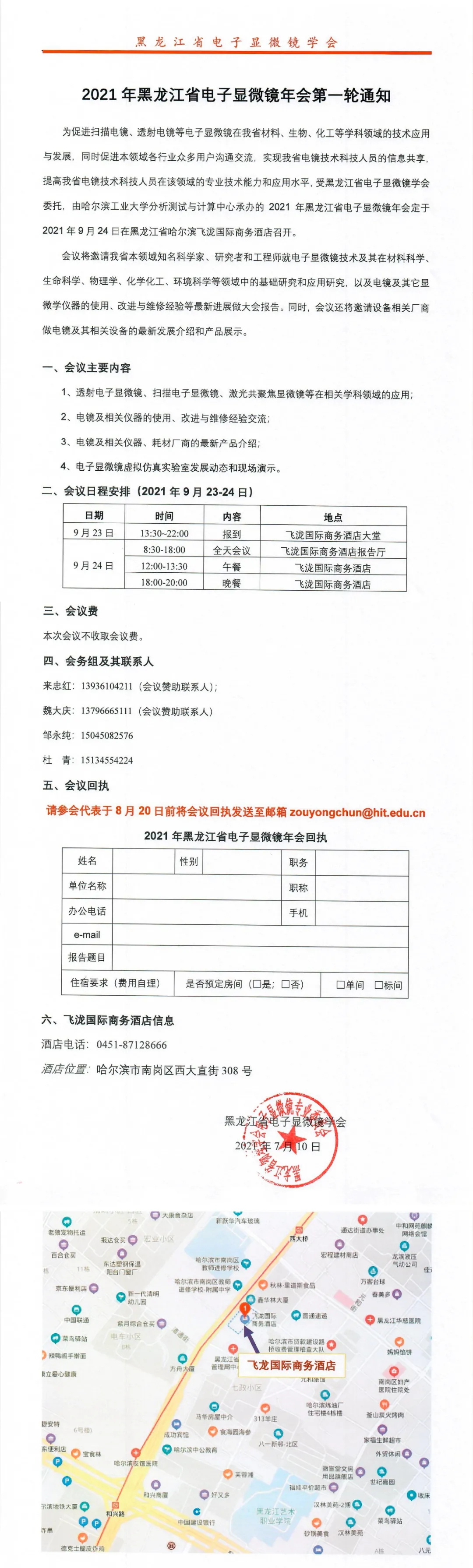 2021年黑龍江省電子顯微鏡年會第一輪通知