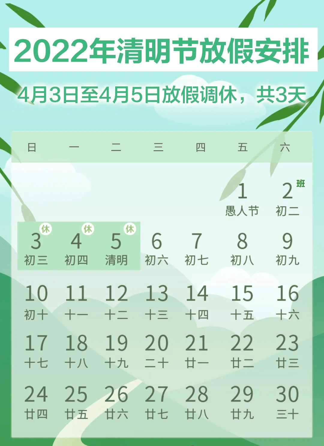 【放假通知】中鏡科儀關于2022年清明節放假安排的通知