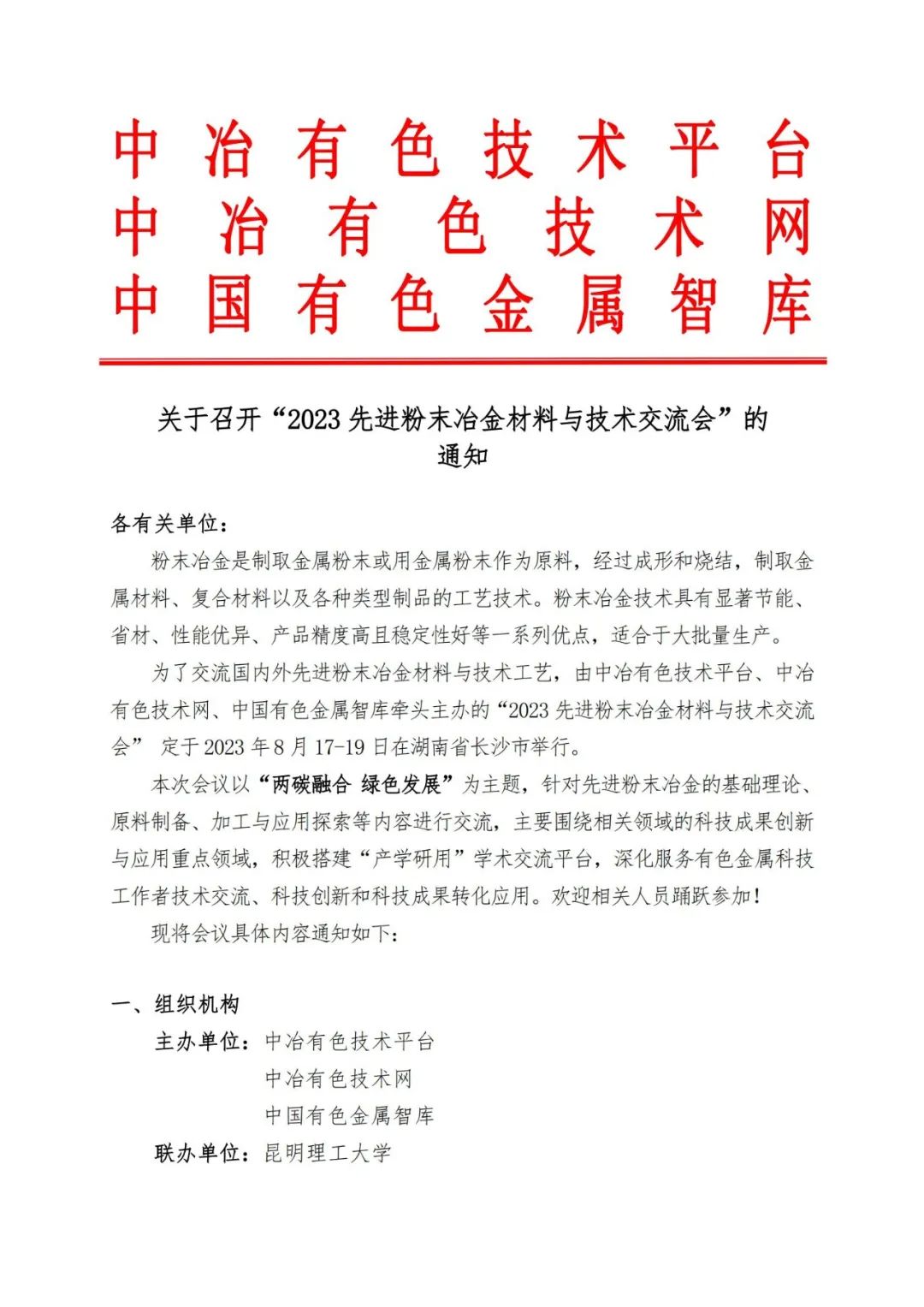 【行業會議】2023先進粉末治金材料與技術交流會通知
