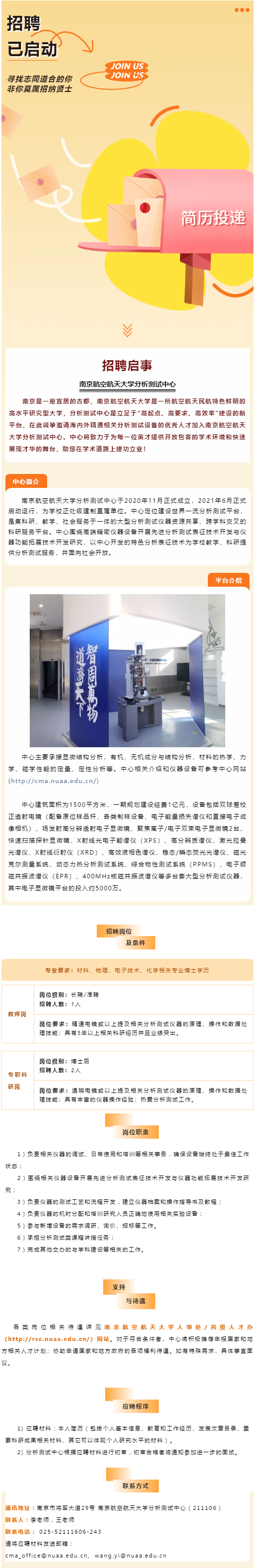 【行業招聘】南京航空航天大學分析測試中心工作人員招聘啟事