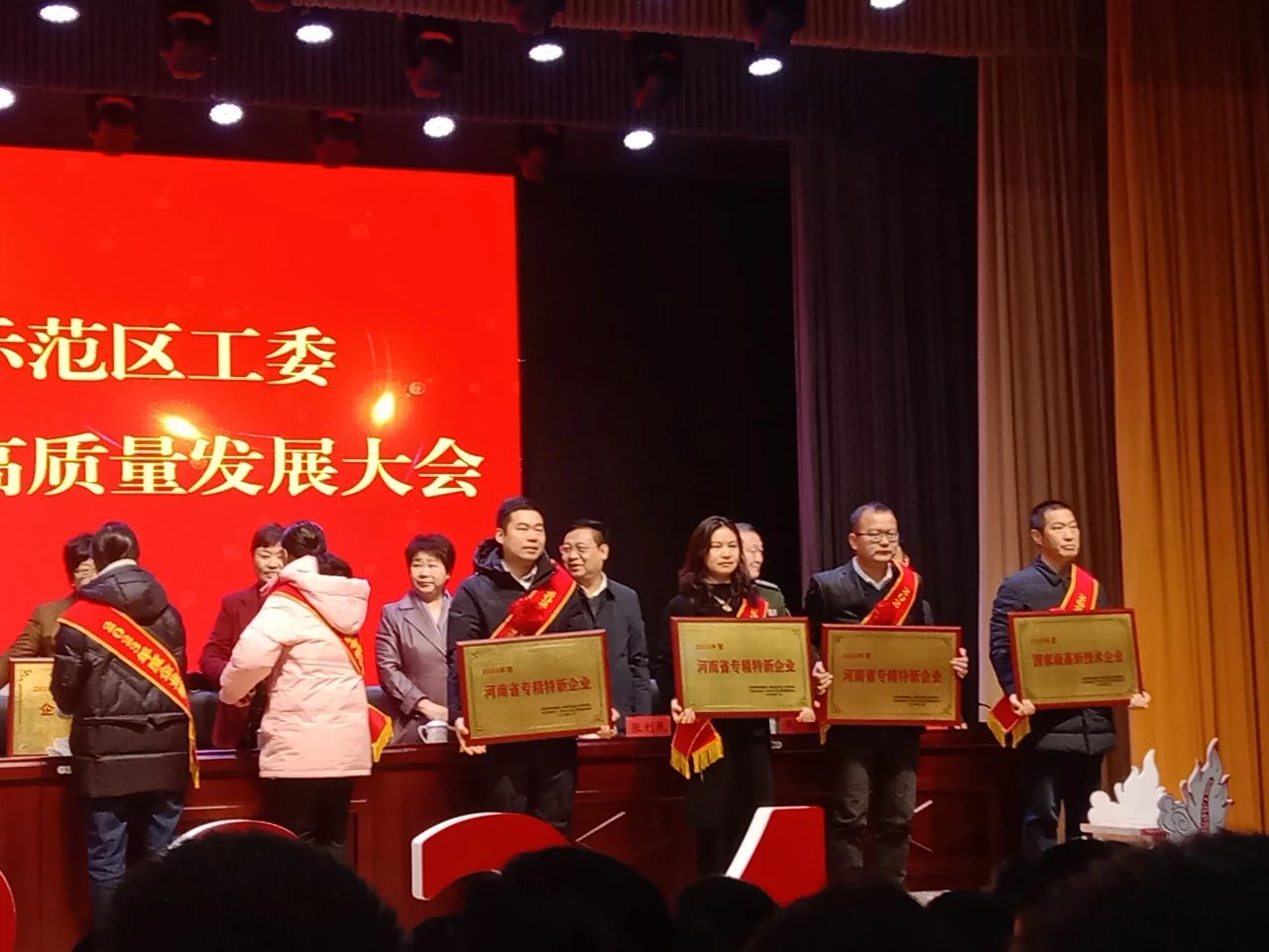 2月23日,城鄉一體化示范區黨工委2024年工作會議暨經濟社會高質量發展大會召開。會議全面貫徹落實中央和省市經濟工作會議、市“兩會”及全市高質量發展大會精神,總結成績、表彰先進、部署工作,動員全區上下以更加飽滿的熱情、更加務實的作風,奮發作為、比學趕超,以名副其實的全市經濟建設主戰場、主陣地、主引擎的擔當和貢獻,在推進中國式現代化建設河南實踐中勇做開路先鋒的示范。區黨工委書記王彥濤出席會議并作講話。區黨工委副書記、管委會主任鄭紅英等區四大班子領導出席會議,會議由區黨工委副書記、統戰部部長賈琦主持。 區黨工委各部委、區直各單位、各鄉(場)街道班子成員、區屬國有企業班子成員、社區書記、受表彰的先進個人、人大代表、政協委員、骨干企業代表等參加會議。 會議宣讀了區黨工委、管委會關于表彰2023年度綜合目標考核、黨的建設暨經濟社會高質量發展工作先進集體和先進個人的表彰決定,對先進集體、先進個人進行了表彰。部分獲表彰的先進代表進行了典型發言。 中鏡科儀副總經理王萍領獎 會議上,河南中鏡科儀科技有限公司被授予“河南省專精特新企業”榮譽稱號!此次獲評,是對中鏡科儀技術水平、創新能力、品牌影響力、高質量發展等多方面的肯定,公司將不斷提升企業核心競爭力,積極發揮“專”“精”“特”“新”作用,依托自身的專業優勢、行業能力、創新精神,通過產教融合的方式整合資源,挖掘潛能,致力將開封打造成中國“電鏡之都”,為助力開封高質量發展貢獻一份力量。